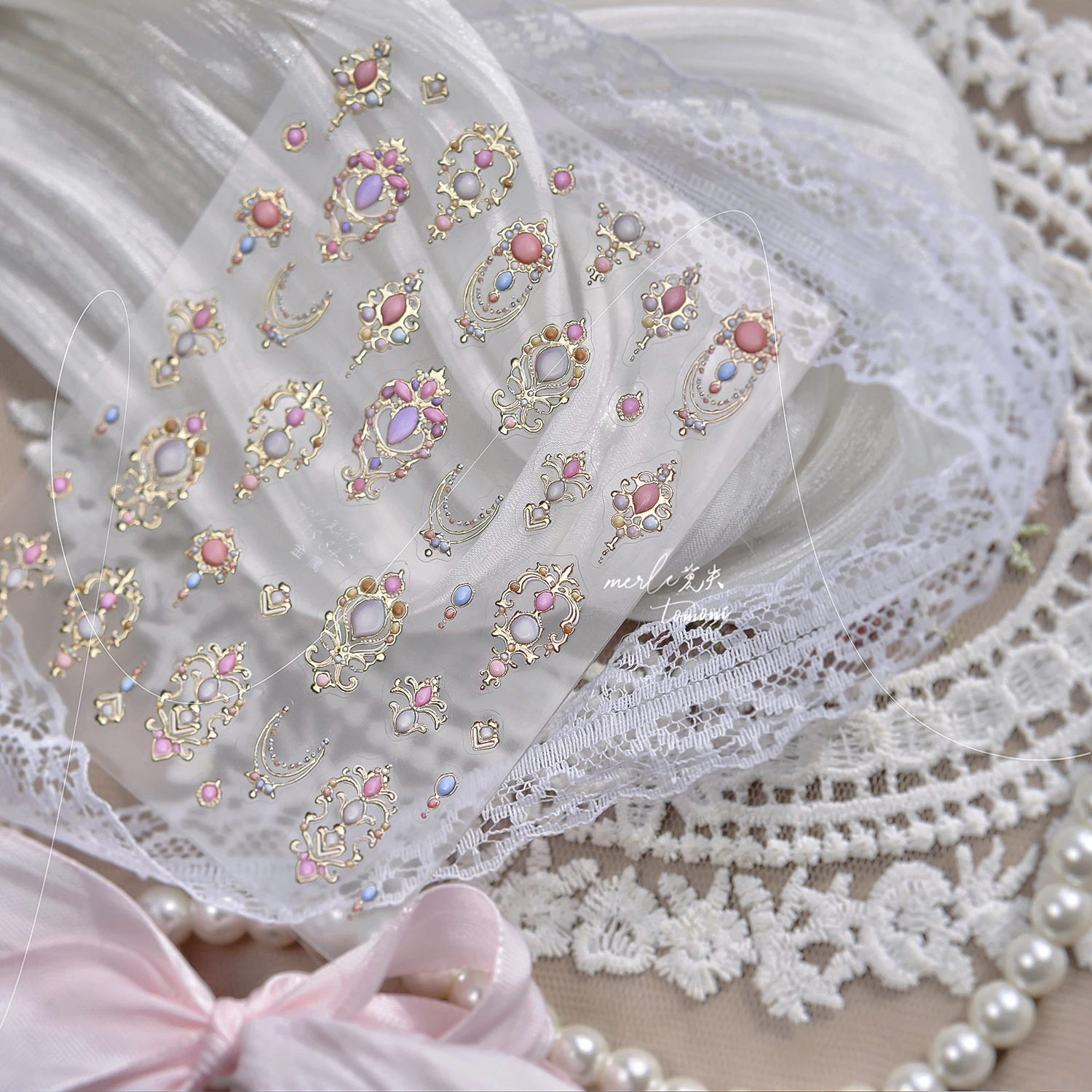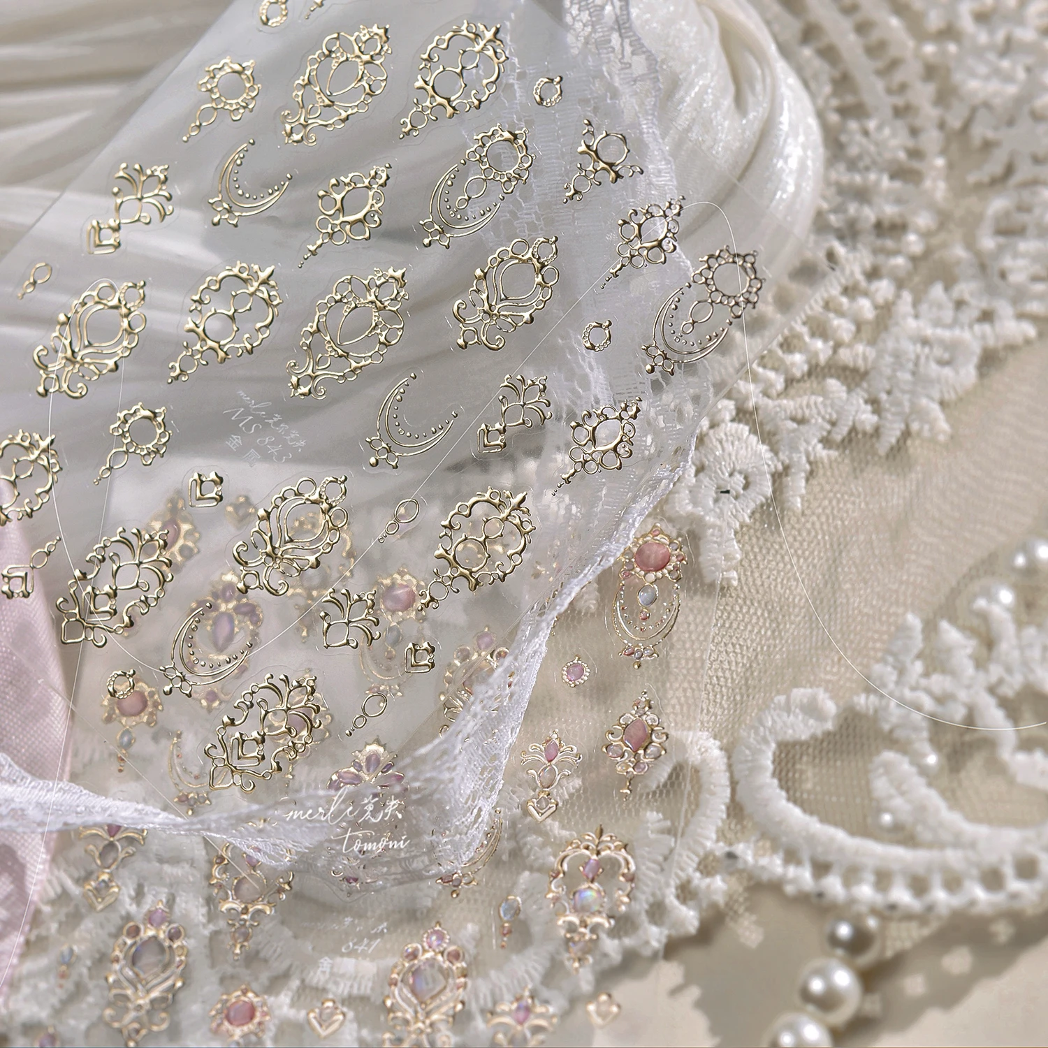 1PCS 5D Picture Frame Style Nail Art Stickers Relief Necklace Gemstone Nail Art Accessories Temperament Girl Stickers