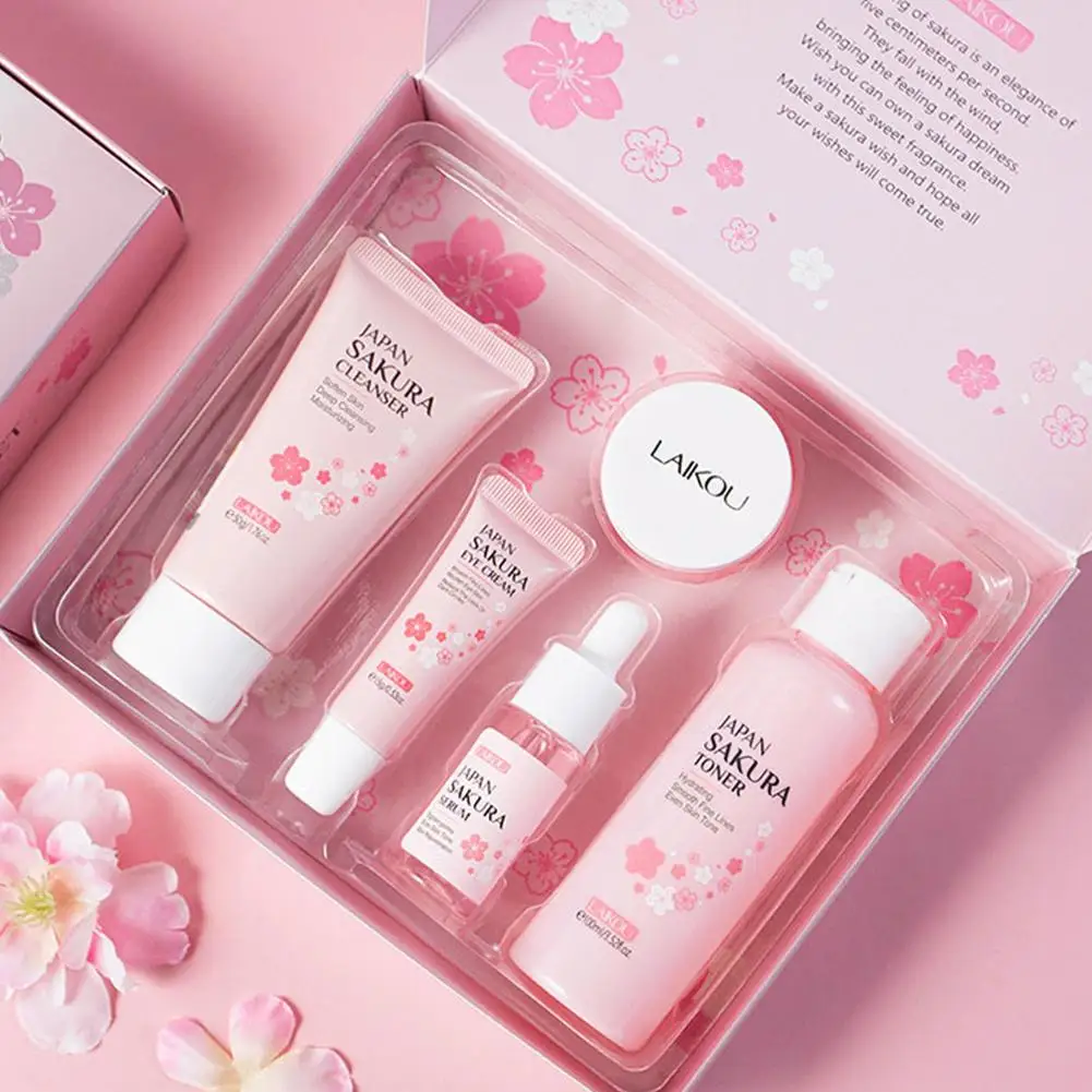 5/3pcs/Set Sakura Skin Care Sets Face Cream Serum Toner Facial Cleanser Sunscreen Eye Cream Gift Box Face Skin Care Set Product