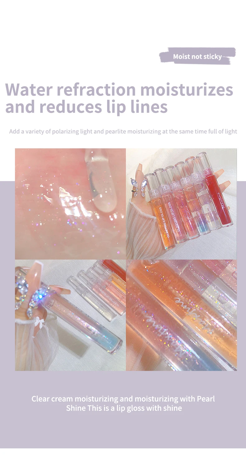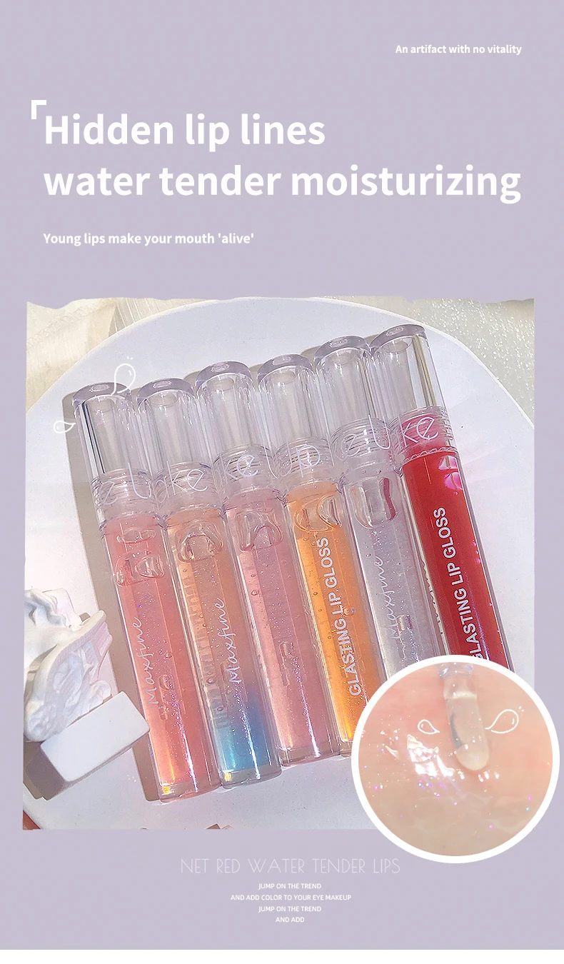 6 Color Mirror Lip Glaze Water Transparent Jelly Gloss Water Light Bright And Durable Natural Moisturizing