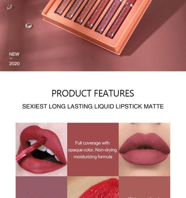 6Pcs Matte Lip Gloss Set Liquid Lipstick Waterproof Long