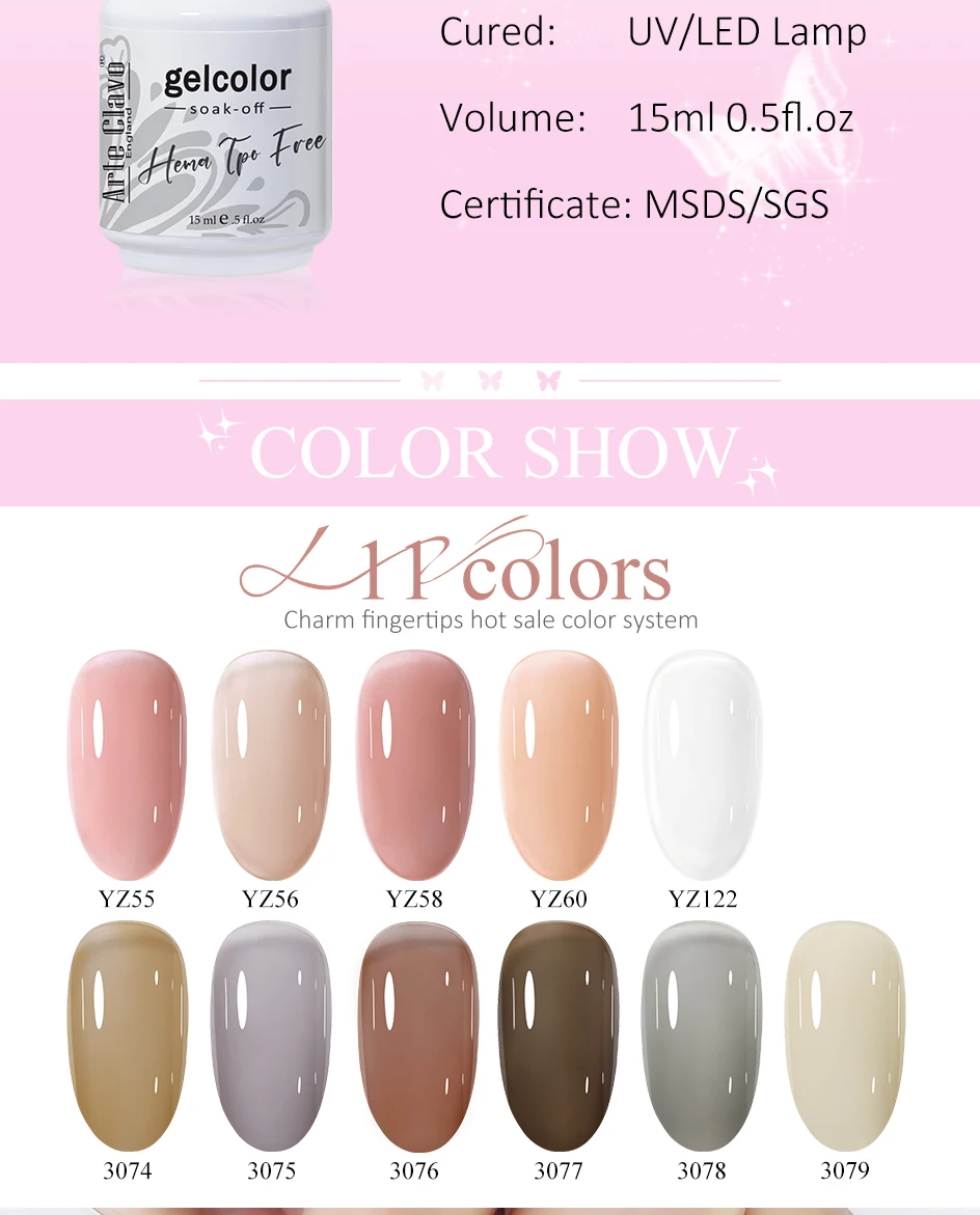 Arte Clavo 367 Colors Gel Nail Polish Set Semi Permanent Hybrid Gel Varnish Set Base Top Coat Soak Off UV LED Nail Gel Kits 15ml CNY 10966 / piece /lot 367