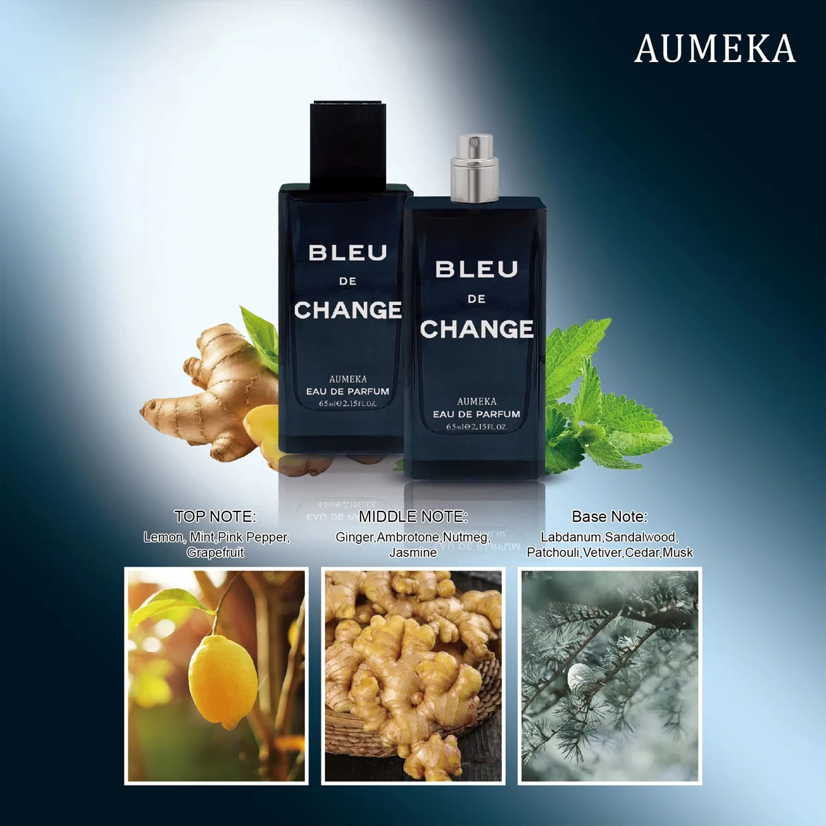 Experience the lasting freshness of AUMEKA BLEU DE CHANGE, a 65ml Eau de Parfum that keeps you smelling great all day.