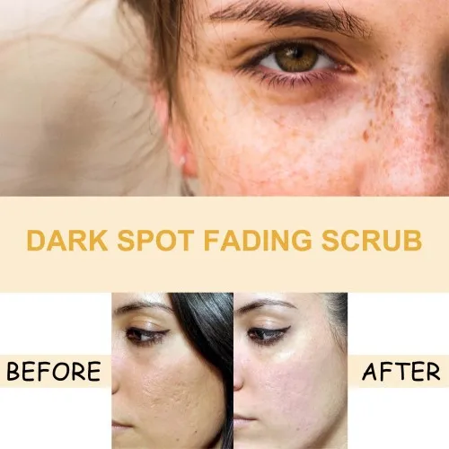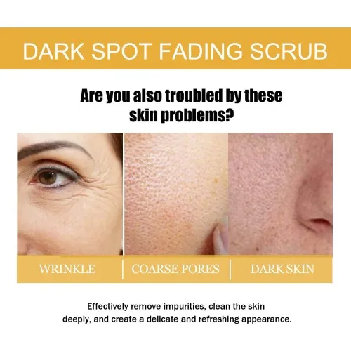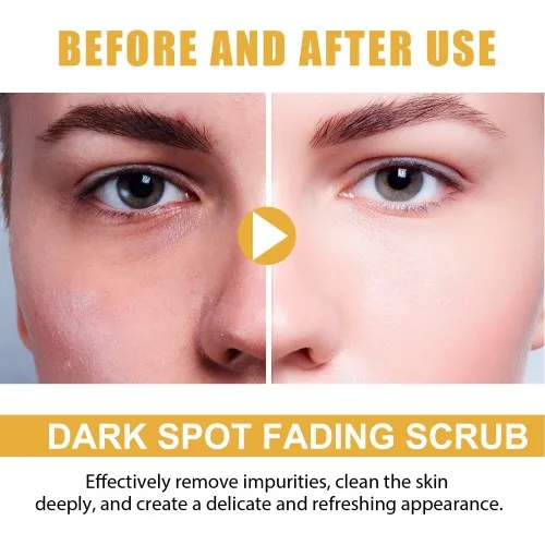Our Dark Spot Fading Scrub contains Curcuma Longa (Turmeric) Root Extract, Persea Gratissimma(Avocado) Oil, Simmondsia Chinensis (Jojoba) Seed Oil. It can effectively remove impurities, deeply clean the skin, shrink pores, make the skin more delicate and smooth, create a delicate and refreshing appearance. The way to use it is very simple: take an appropriate amount of the scrub and massage it gently on the wet skin in a circular motion, leave it for 10 minutes, and then rinse it off with water. It can gently clean the dirt on the skin surface, moisturize the skin, and adjust the water and oil balance of the skin.